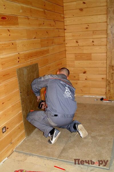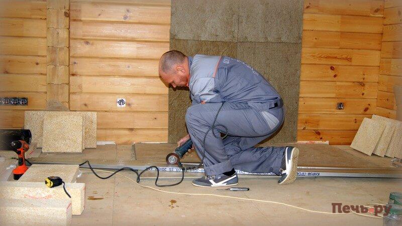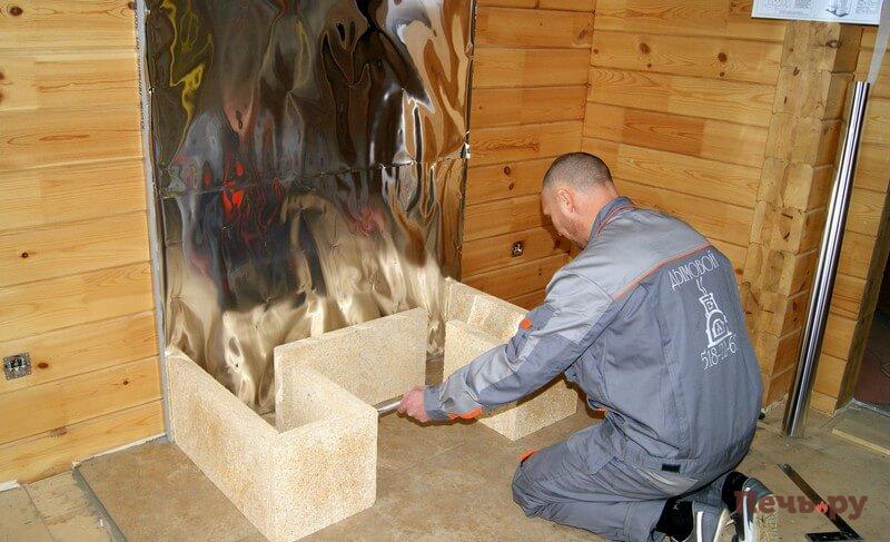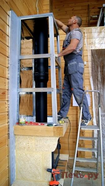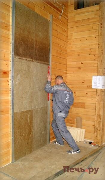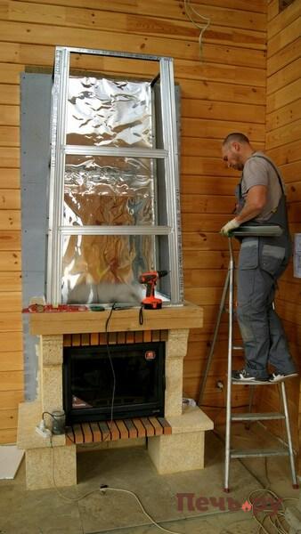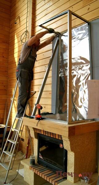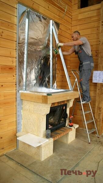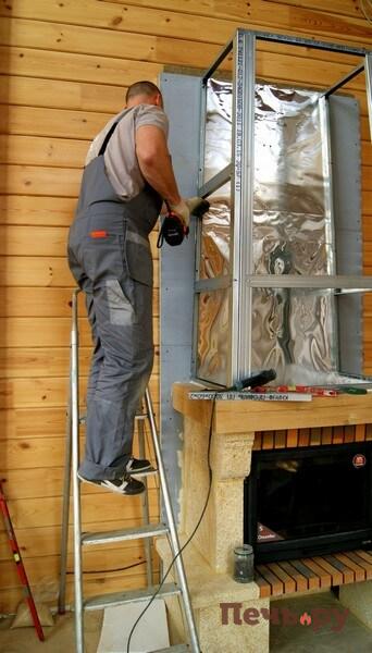 Начинаем монтаж каминного короба.