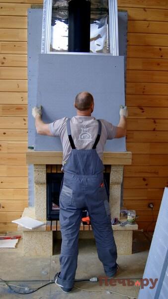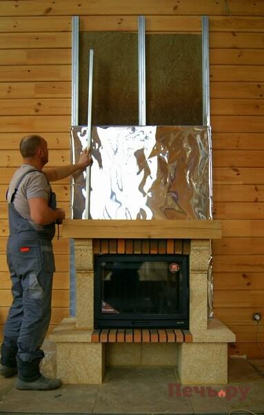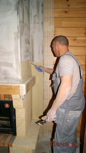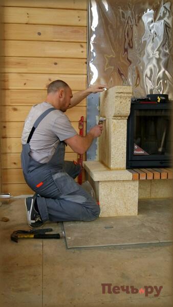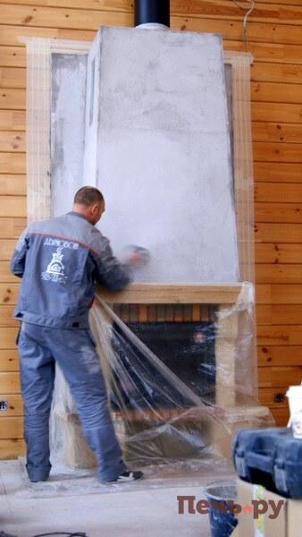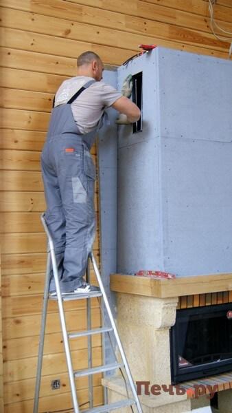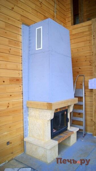 И проводим чистовую отделку каминного короба.