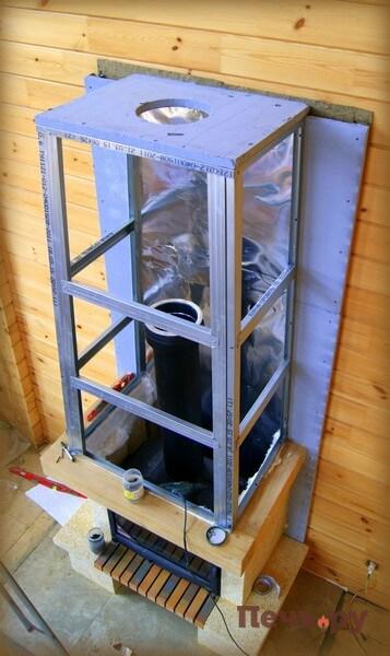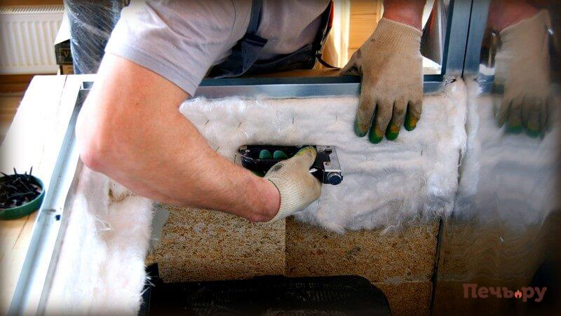 Далее монтируем топку и продолжаем сборку облицовки.