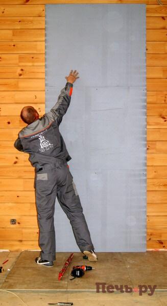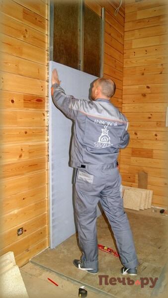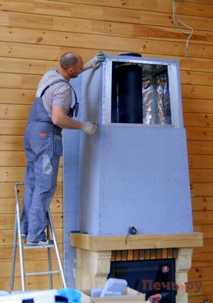 Зашиваем короб каминной облицовки.
